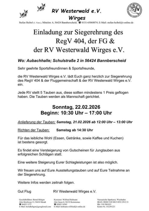 Brieftaubenzüchter- Reisevereinigung "1900" Koblenz u. Umgebung eV